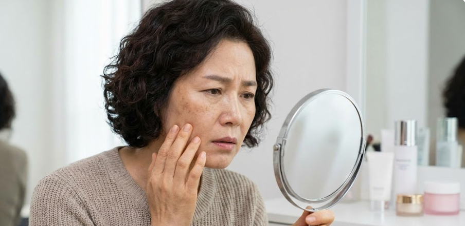 에스트로겐 변동으로 멜라닌 형성 신호가 민감해집니다. 폐경 전후에는