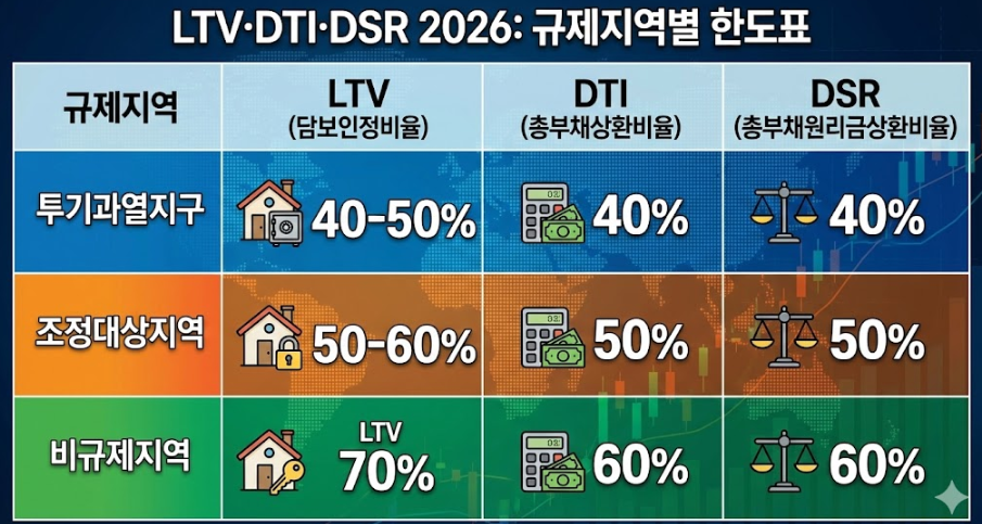LTV·DTI·DSR 2026: “규제지역별 한도표(엑셀·PDF 다운로드)”